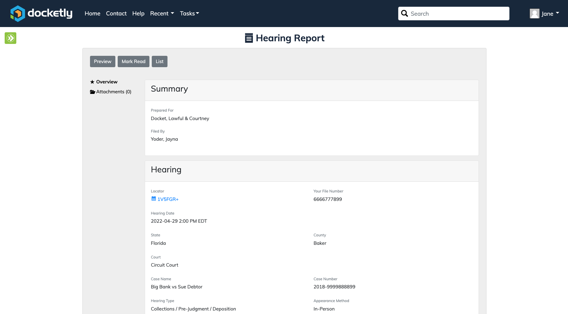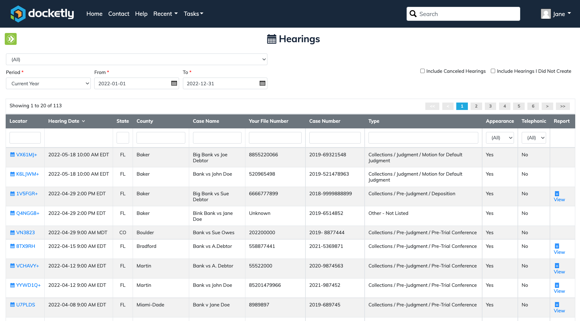 Docketly actively checks the attorney network for debtor representation. You can exclude attorneys who represent debtors from working for certain clients, or you can use this as a custom compliance setting for all of your hearings.
