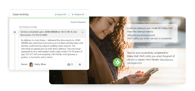 - Detailed Tracking: Track your serves with updates—including process server notes and service timelines—in your secure account,