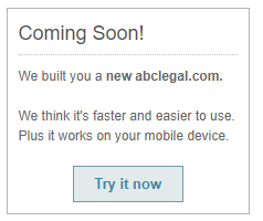 Starting today, certain ABC Legal customers will see the option to switch to the new website (pictured). Additional customers will see the option to switch in coming weeks.
