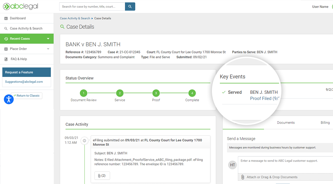 Upload Legal Documents Monitor Service of Process Proof of Service of Process