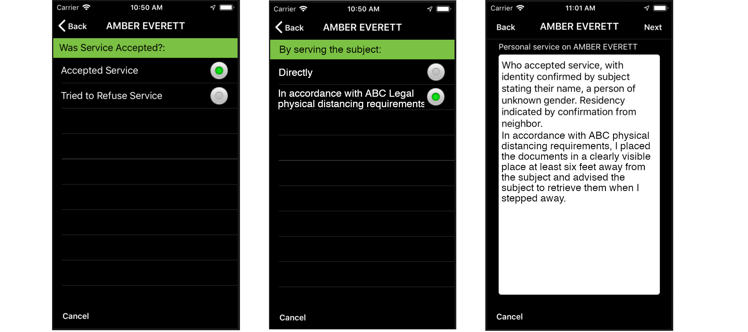 Yes. We have modified ABC Mobile to allow process servers to quickly and accurately report physically distanced service and proofs of service will reflect the new protocol. Learn more.