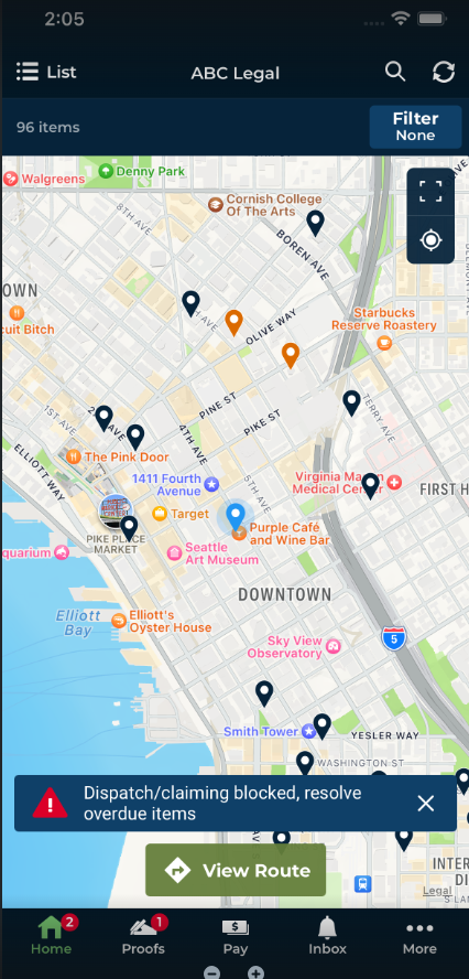 A warning will populate stating "Dispatch/claiming blocked..." You will not be able to claim new jobs or areas until your account is in good standing again.