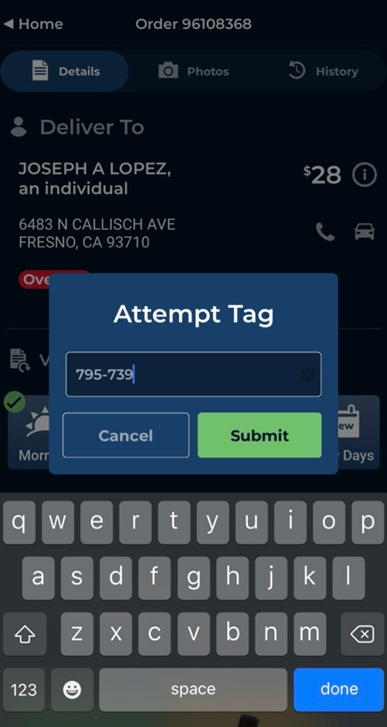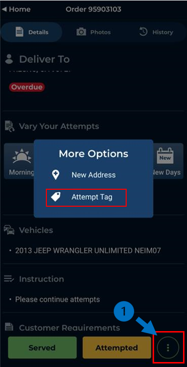 In the Order Details, click on “More” at the bottom right corner then click “Attempt Tag”