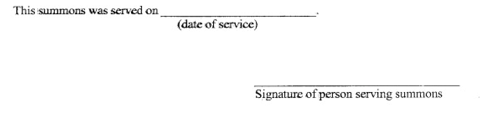 After completing a service, courts require that you sign and date the proof and a copy of the summons. There will be a section on both documents that allow for a date and signature. If one of the sections is left blank, the court will reject the documents.