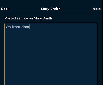 - Provide details on where the documents were posted (e.g., front door, door handle, etc.).