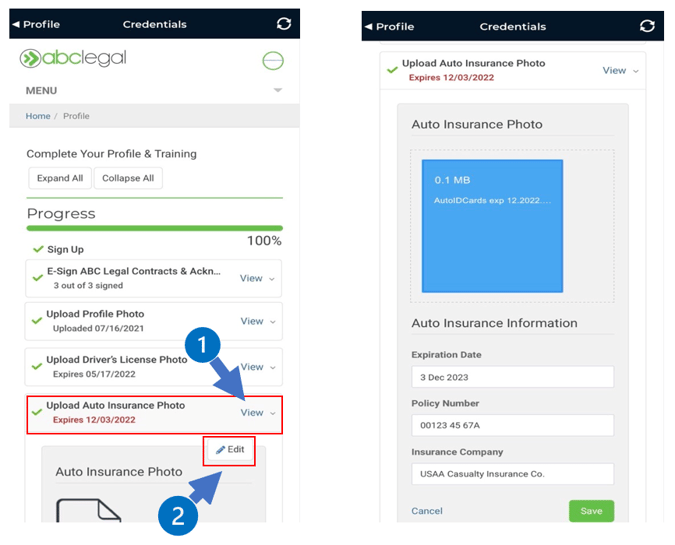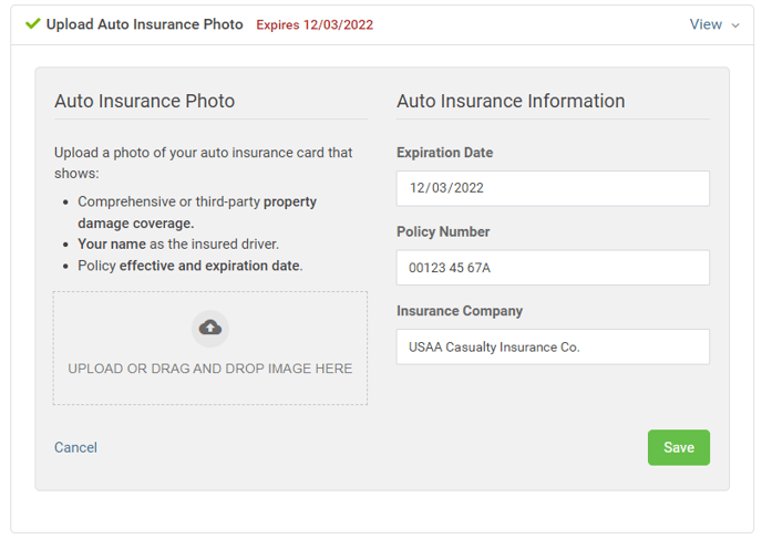Upload a photo (Make sure all photos area clear and show name, effective and expirations dates and all necessary information)