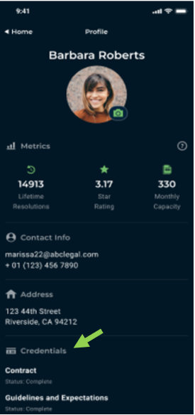 A list of registrations and credentials can be found in the profile section of ABC Mobile under “Credentials”