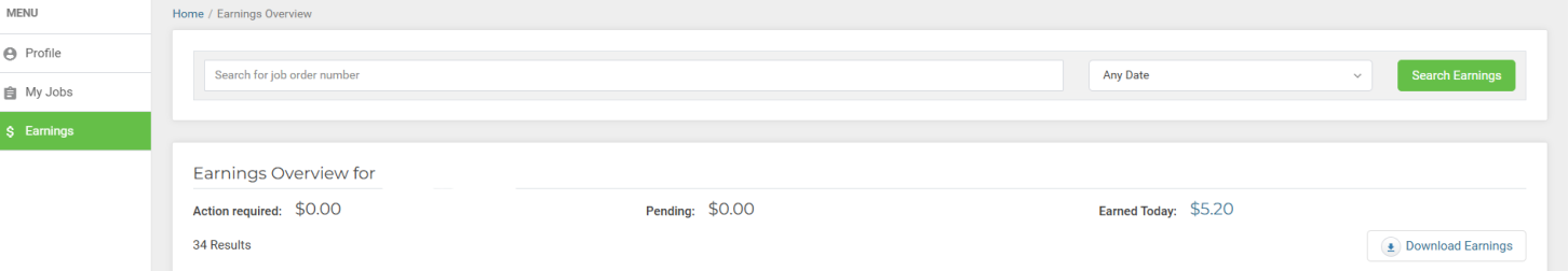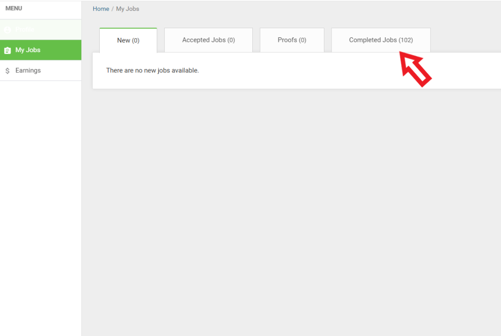 You can review your history of resolved jobs with ABC under the "Completed Jobs" tab. This serves as a valuable resource for verifying job completion dates and corresponding earnings.