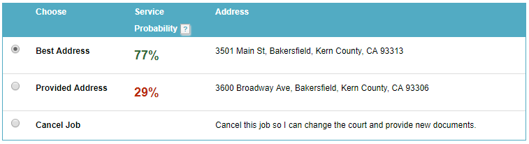 Gauge the likelihood of service at addresses provided by investigations with a service probability score.