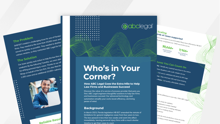 When a law firm needed urgent support, ABC Legal swiftly scaled to manage a surge in filings, ensuring seamless service and client success.