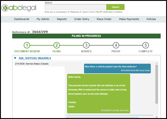 As we transition to ABC Legal’s new system, some customers will still have active orders in MLQ Attorney Service’s old system. As these jobs are completing, they will be invoicing and generating statements separately. Please continue making payments for both ABC and MLQ statements. The full migration to ABC Legal’s system should be fairly quick.