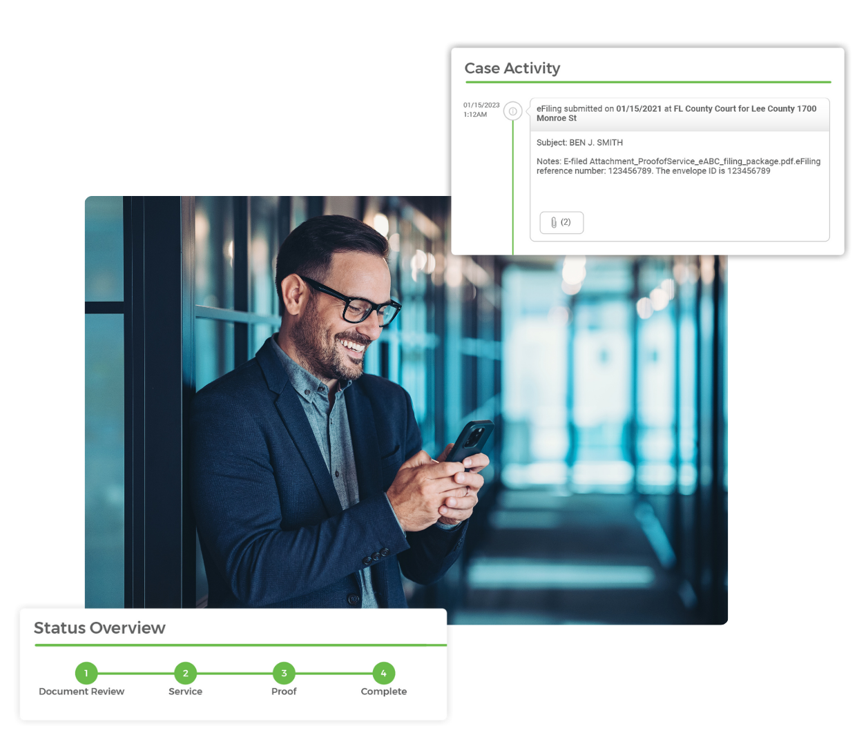 ABC Legal’s platform ensures full transparency from order to proof of service. Access real-time updates 24/7 directly from your account and opt-in for instant text or email alerts to stay informed about your case's status.