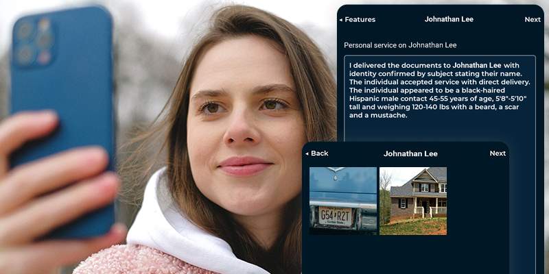 Getting unprecedented digital evidence to support service of process has never been simpler. Time-stamped GPS coordinates, photos, and details using a mobile device.