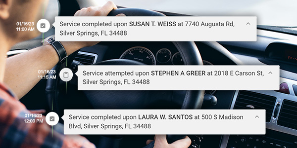 Built-in route planning allows process servers to optimize their schedules, allowing them to deliver documents faster and with greater efficiency.