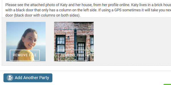 Provide detailed notes and photos to help the process server locate or time the delivery perfectly for your case. You can share this information either by including it in the Physical Description/Helpful Notes section while placing your order or by sending us a message through your account on the Case Details page.