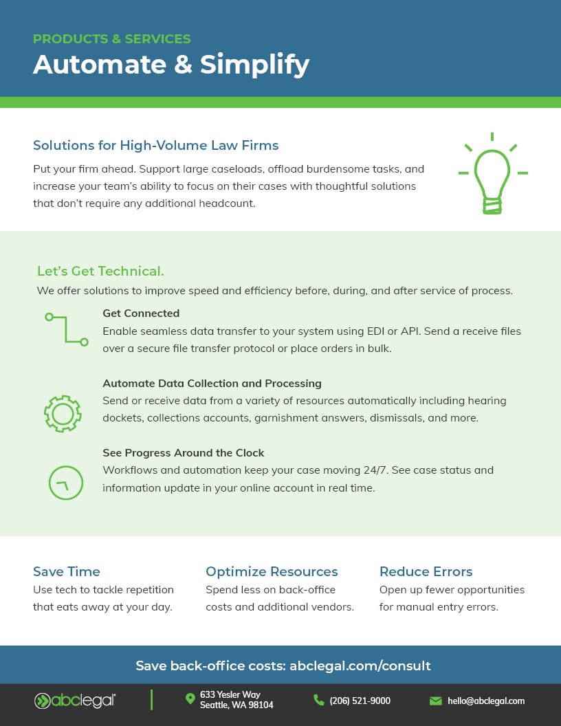 Discover how ABC Legal's unique solutions are making service of process what it should be for law firms in every industry: timely and diligent, with surprisingly great support.